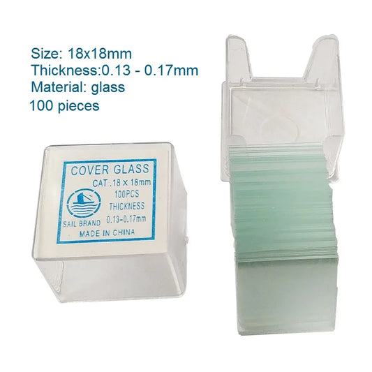 100pcs Microscope Clear Glass Slides Cover Slips Blank Square 18x18mm