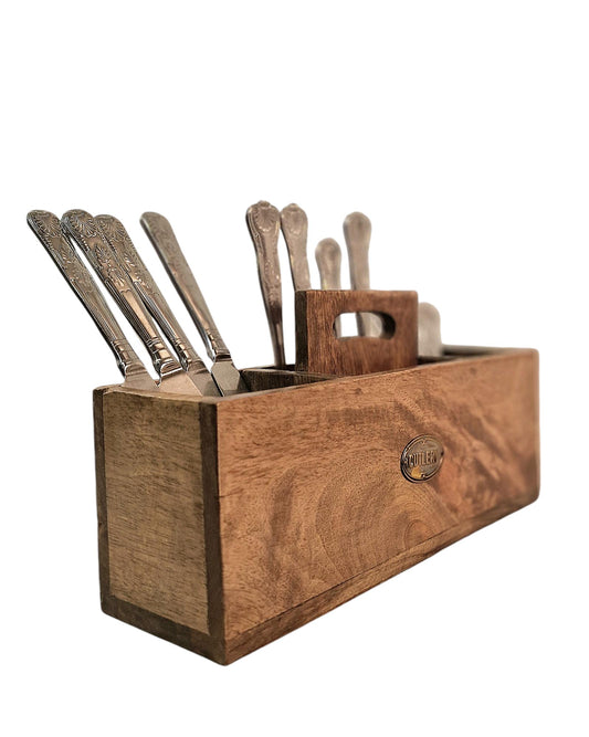 Mango Wood Cutlery Stand with Handle Eco-Friendly Kitchen Organizer
