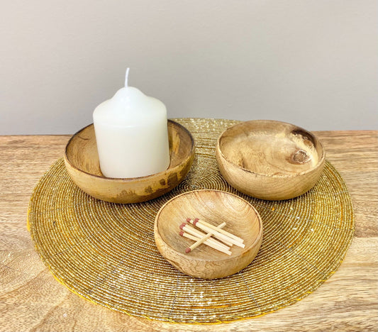 Mango Wood Round Bowls Set of 3 Eco-Friendly Kitchenware Rustic Home