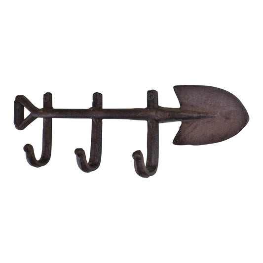 Rustic Cast Iron Wall Hooks Garden Spade Design with 3 Hooks for Home Decor