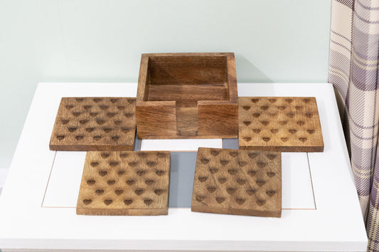Set of 4 Engraved Heart Design Coasters for Gifts and Home Decor