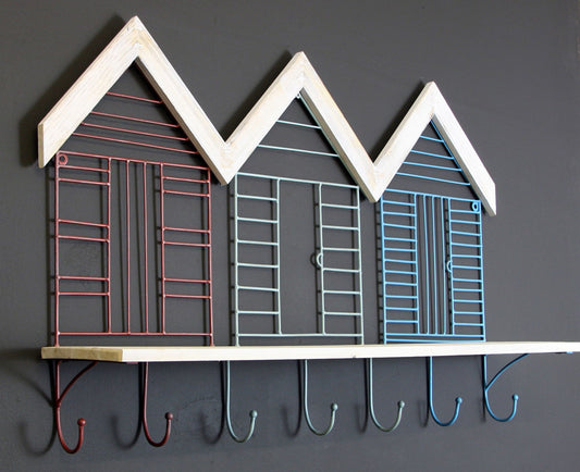 7 Beach Hut Wall Hooks with Shelf Coastal Decor Nautical Home Storage