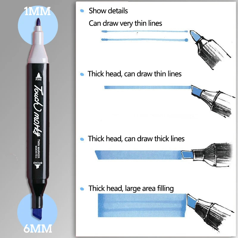 Double-Ended Design β Brush tip for smooth strokes & fine tip for precise details.