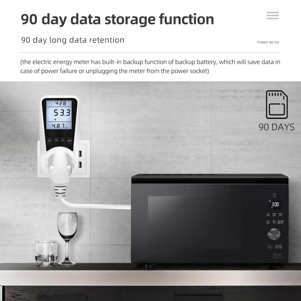 220V Digital Wattmeter LCD Power Consumption Meter – UK Plug