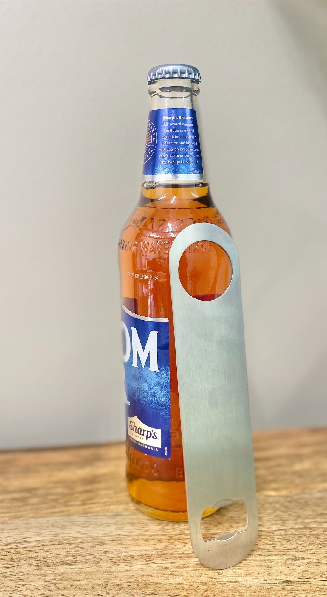 Introducing our Stainless Steel Bottle Opener, designed for both professional bartenders and home bar enthusiasts. This sleek and durable opener features an added spinner ring, enhancing speed and efficiency when opening bottles. With compact measurements of D4 x H0.2 x W18cm, it fits perfectly in your hand and is easy to store. SKU: CK0046. Elevate your bar experience with this essential accessory!