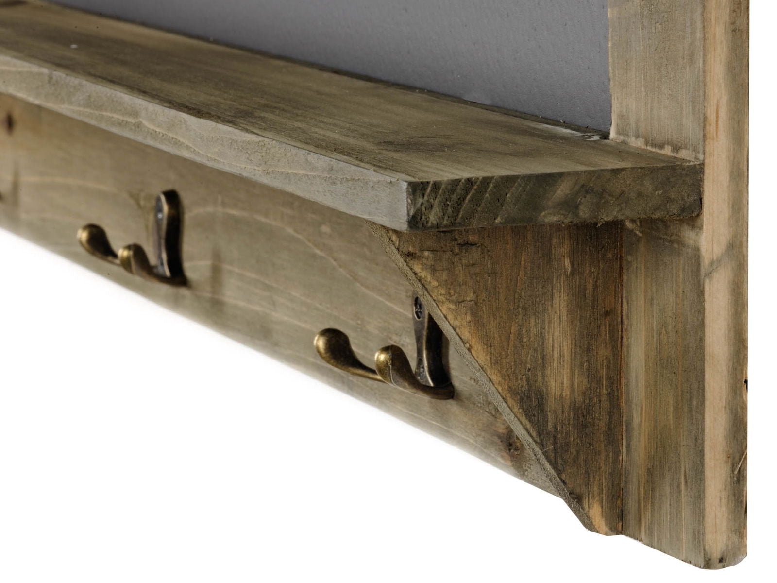 Discover our exquisite antique wooden blackboard, a perfect blend of functionality and vintage charm. This well-crafted piece measures 70 x 79 cm, providing ample space for notes and reminders. The included wooden shelf, measuring 79 x 7 cm, offers convenient storage for your essentials. Enhance your decor with three antique brass effect double hanging hooks, ideal for keys or accessories. Elevate your home or office with this stylish and practical addition that combines beauty and utility.