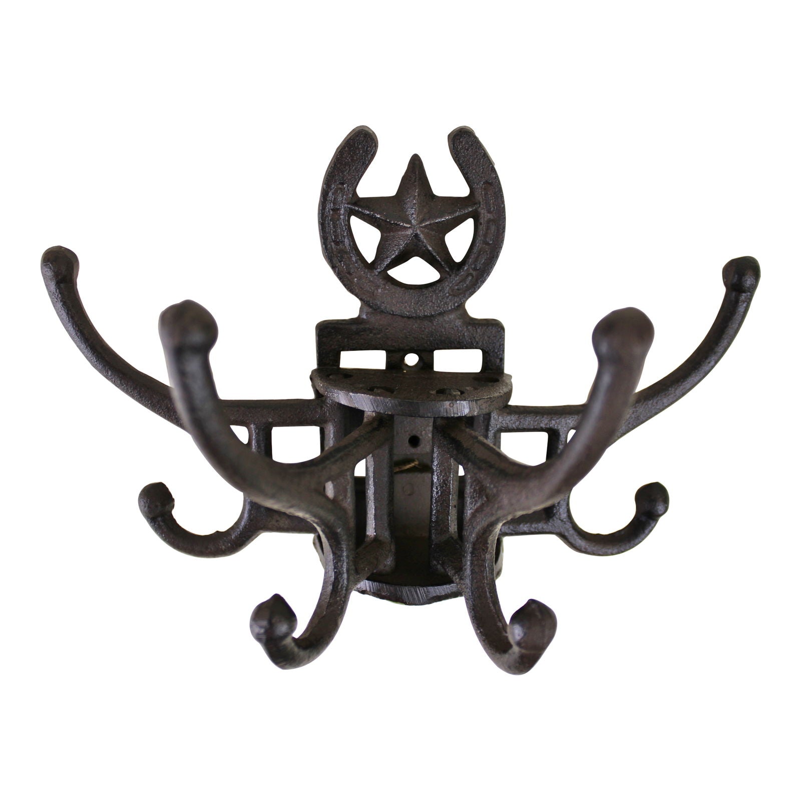 Cast Iron Wall Mounted Rotating Coat Hooks with 8 Hooks for Home Organization