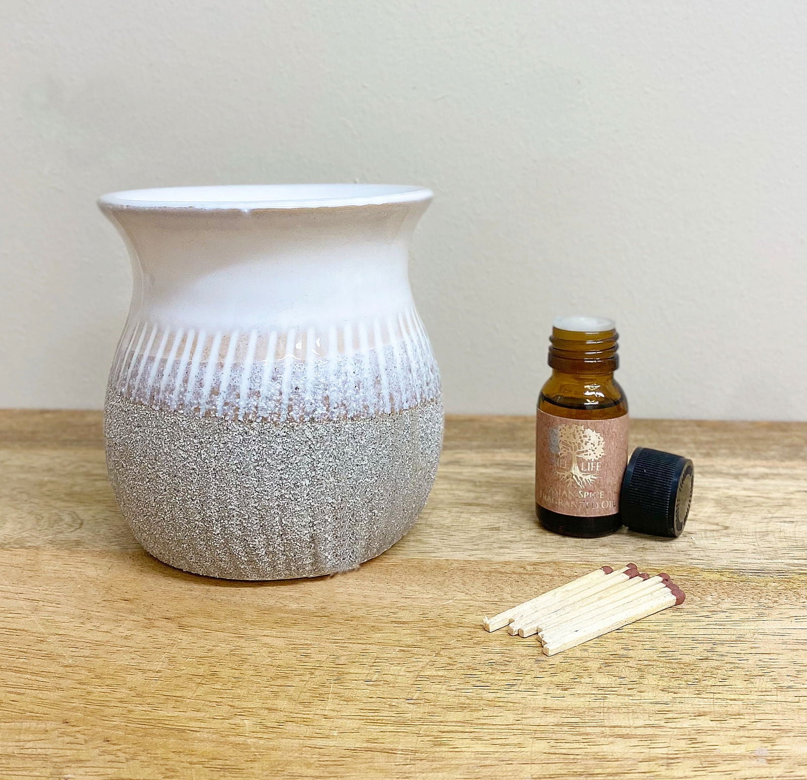Introducing our Grey Ceramic Oil or Wax Warmer, designed with a stylish sandy finish base that complements any decor. This versatile wax warmer not only enhances your home with delightful scents but also serves as a beautiful decorative piece. Perfect for gifting or for your own aromatherapy experience, it allows you to enjoy the benefits of essential oils in a chic manner.