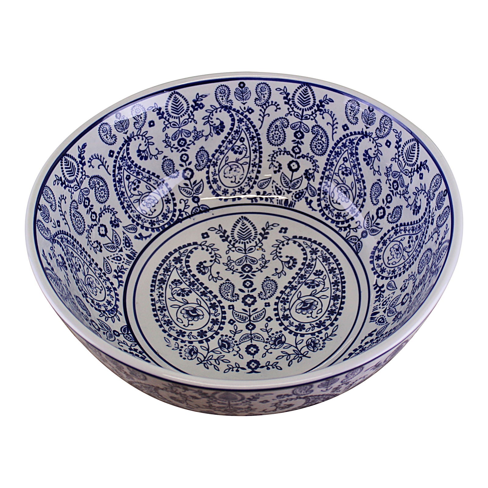 Vintage Blue & White Paisley Design Large Ceramic Bowl Home Decor