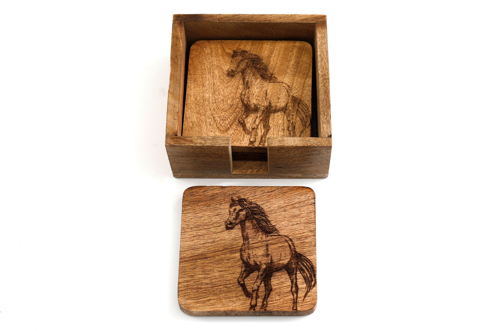Set of 4 Wooden Engraved Horse Coasters - Unique Home Decor Gift Idea