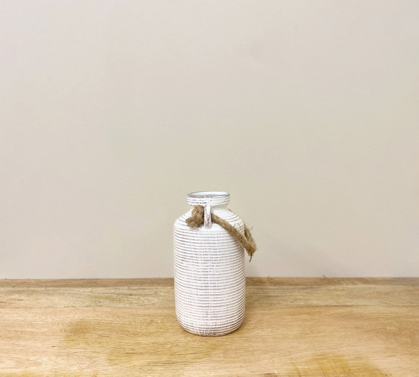 Discover our stunning stone vase, designed in natural colors with a unique ribbed effect and complemented by a stylish rope handle. This Roman-inspired piece is perfect for enhancing any home decor style. Key features include a vase opening of 5.5cm and a handle height of 6cm from the rim, making it both functional and aesthetically pleasing. With measurements of D11 x H20 x W11cm, this versatile vase is ideal for displaying your favorite flowers or as a standalone decorative piece. Elevate your space with this exquisite addition that combines elegance and practicality.