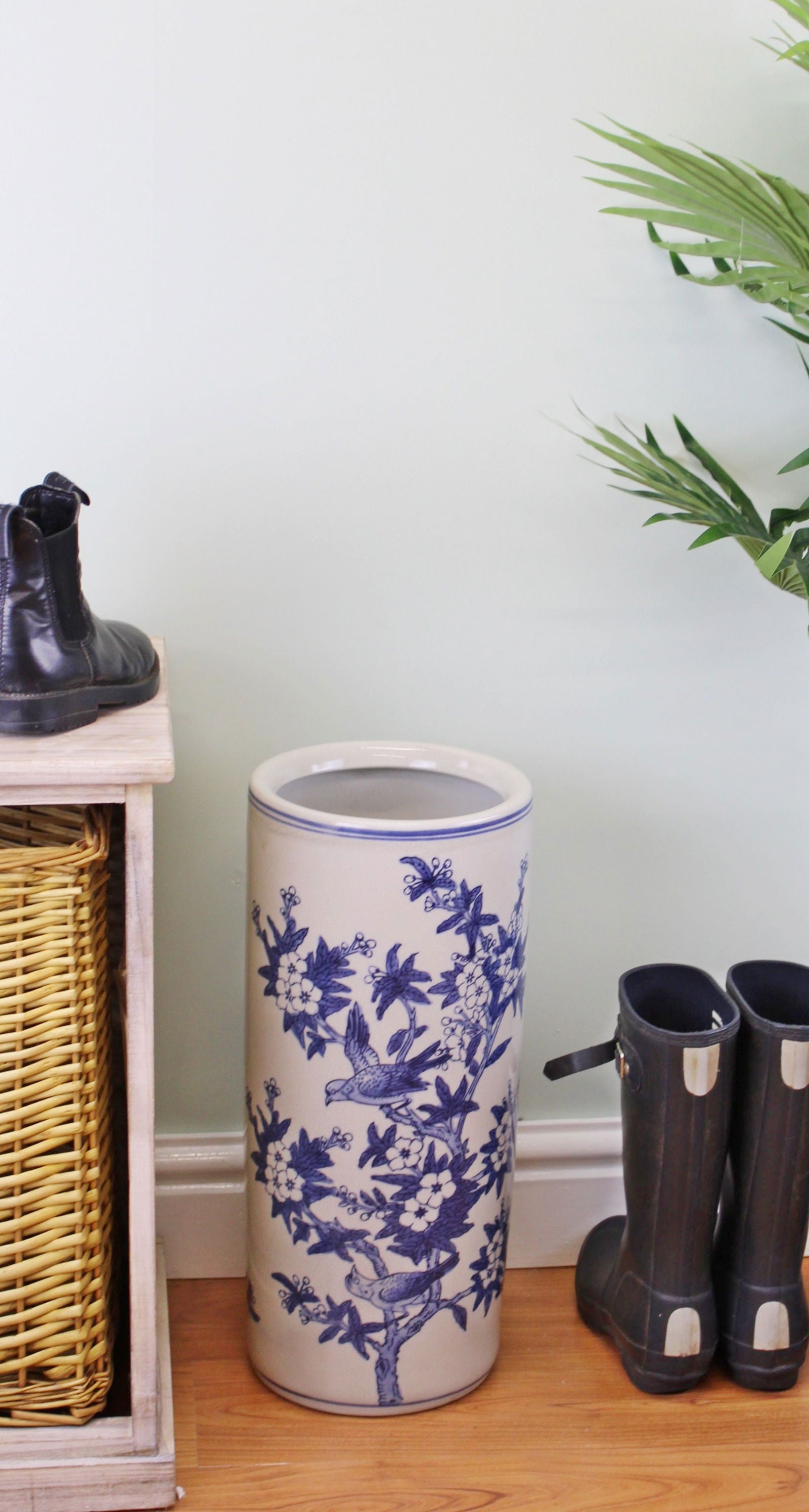 Vintage Blue & White Bird Design Umbrella Stand Unique Home Decor