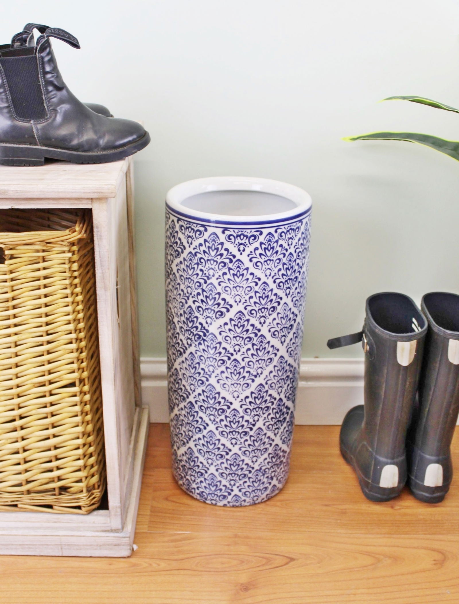 Vintage Blue & White Pattern Umbrella Stand Unique Home Decor
