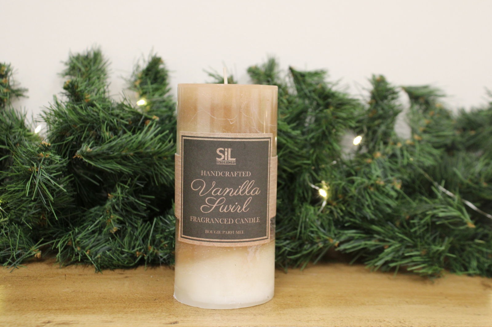 Vanilla Swirl Ombre Pillar Candle - Decorative Home Accent for Weddings