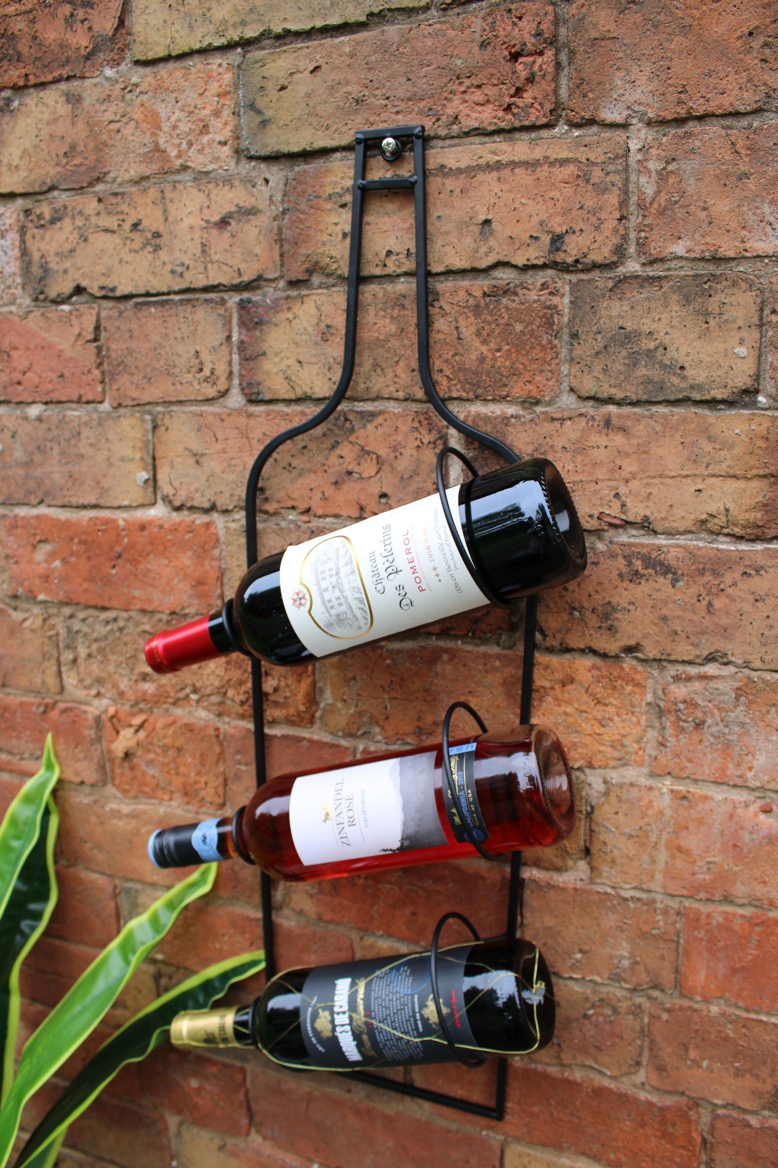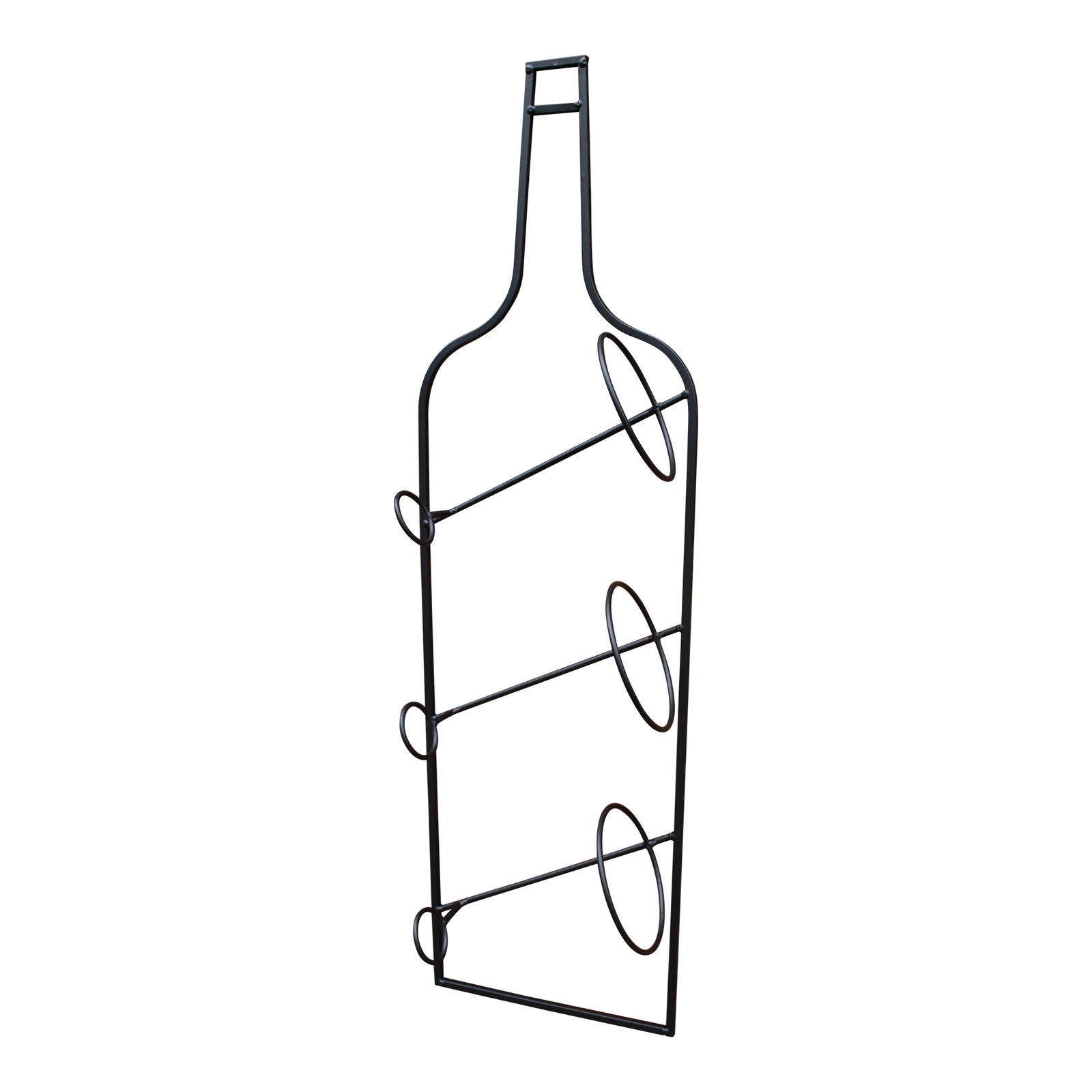 Introducing our stylish wall-mounted black metal wine bottle holder, designed in the shape of a bottle for a modern touch to your home decor. This sleek storage solution conveniently holds up to 3 bottles of wine, making it perfect for wine enthusiasts looking to save space while showcasing their collection. With measurements of 10.5 x 70 x 20.5 cm, it fits seamlessly into any wall space. Elevate your wine storage experience with this functional and aesthetic piece that combines style and practicality.