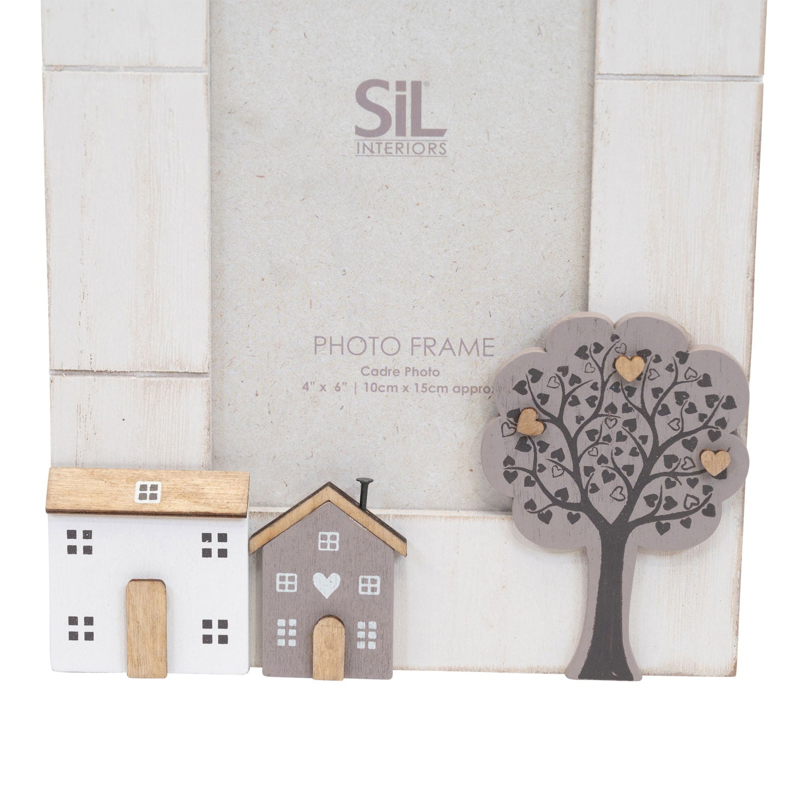 "Introducing our exquisite natural color portrait picture frame, designed to be the perfect gift for new homeowners or to celebrate a newborn. This beautifully crafted frame features two hand-carved houses and a charming tree on the front, adding a touch of warmth and character to any room.