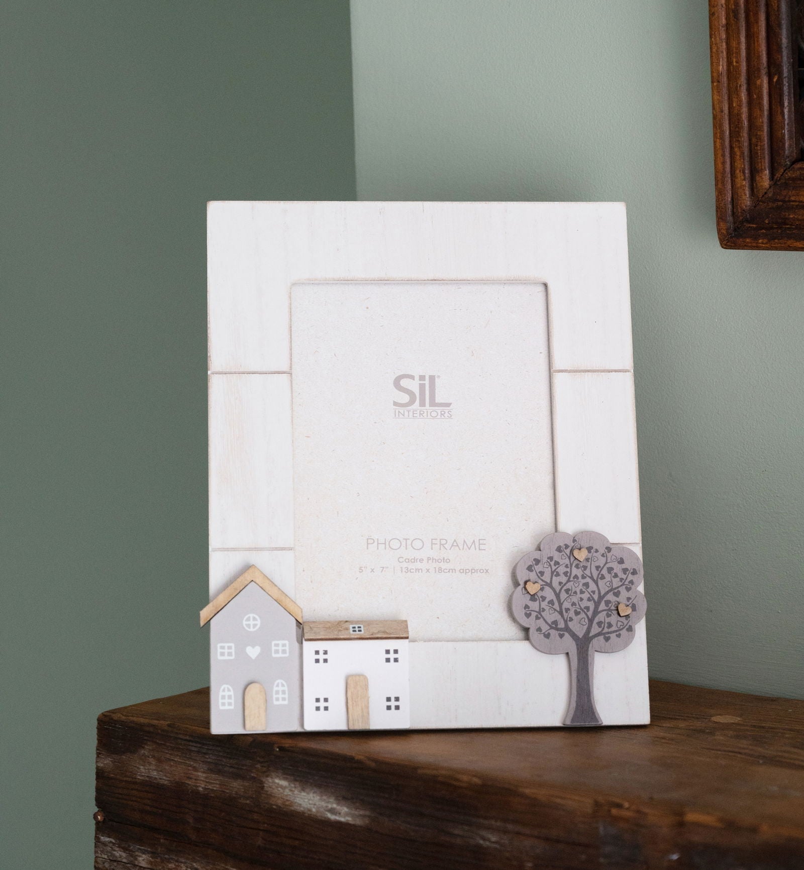 "Enhance your home decor with this exquisite natural color portrait picture frame, featuring two intricately hand-carved houses and a charming tree design on the front. Perfect as a thoughtful gift for new homeowners or to celebrate a newborn, this frame adds a touch of warmth and elegance to any room.